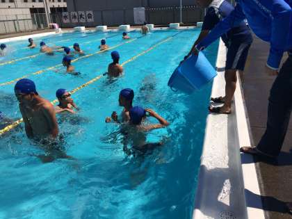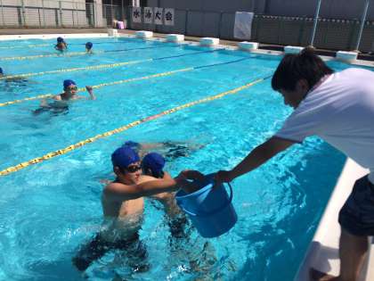 水中に散らばったコインを集めて担任の先生のバケツの中へ。