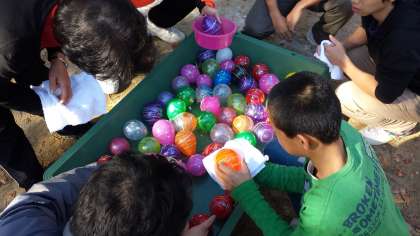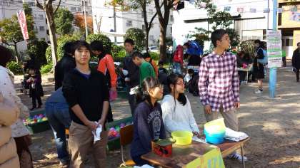 港中学校の生徒会もヨーヨーつりなどのお店を出しています。