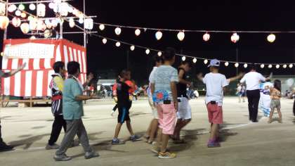 午後8時になると随分沢山の方が集まりました。中学生も一緒に踊っています。