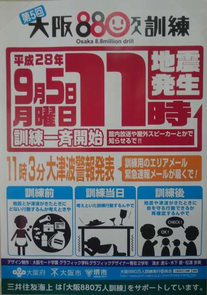 当日は午前11時地震発生を想定し、訓練一斉開始されます。