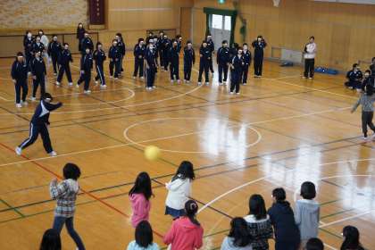 中学2年生のお兄さんとお姉さんと一緒にドッヂボールをして楽しみました。