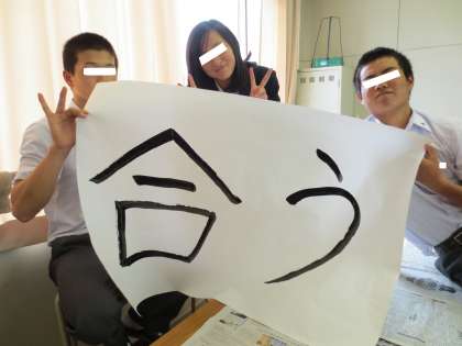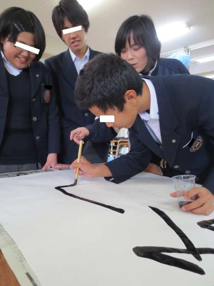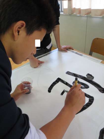 各クラスのイメージを言葉に表し、模造紙に筆で書きました。