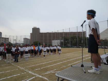 港中学校の生徒代表として、とても素晴らしいあいさつで体育大会が始まりました。