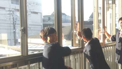 窓ふき(窓磨き)ピカピカ 男子バスケットボール部