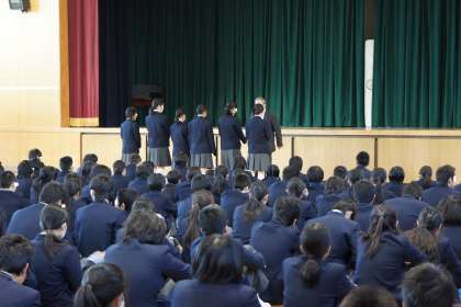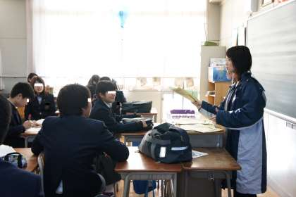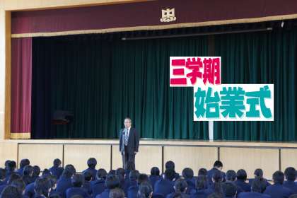 始業式後の教室では冬休みの課題やしおりを集めました。