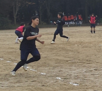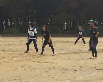 ボールを蹴ると、すぐさま一塁めざしダッシュ。蹴った瞬間の判断が大事です。ランナーコーチも責任重大、少しの判断ミスでアウトにもなりセーフにもなる。