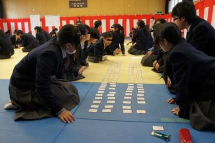 2年生・・・格技室にて、班対抗、及びクラス対抗のカルタ大会を行いました。