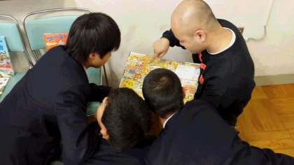 うんちレストランの絵本にたくさんの人が集まりました。みんな絵本に触れて笑顔、爆笑のひとときでした。