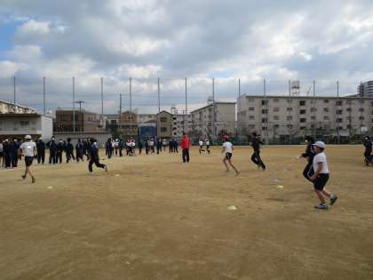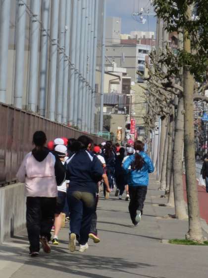 港中生の1年生と小学6年生が一緒に駅伝大会の練習をしました。