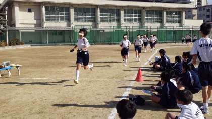 1年生持久走 (12分間走)何周走るか目標を立てよう