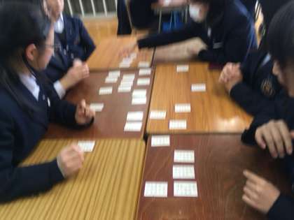 2年生、本日学活の授業で百人一首プレ大会を行ないました。