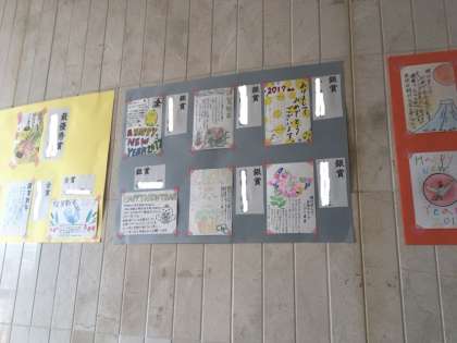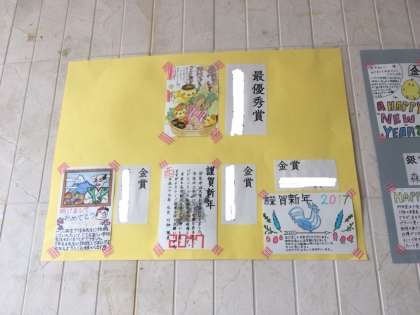 2年生、冬休みの国語の宿題で年賀状を作成しました。
