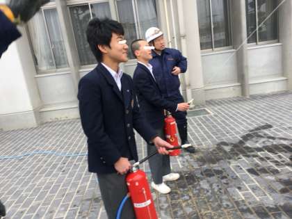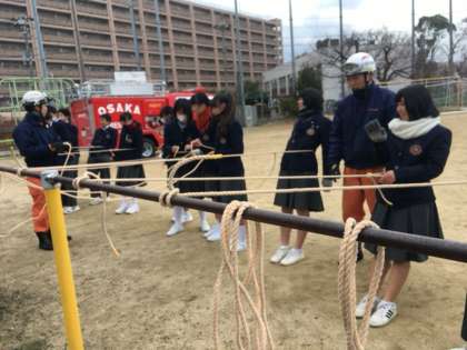 また消火器、ロープ、簡易担架、震災時に必要な道具の使い方についても学習しました。