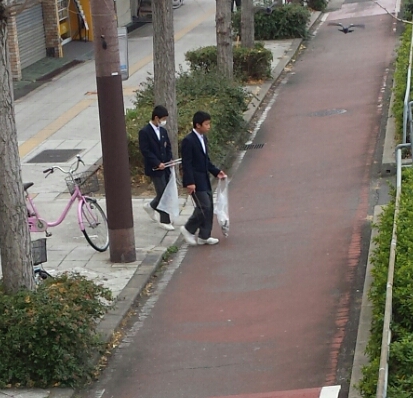 学校から朝潮橋駅までの路上のゴミを毎日掃除しました。ラグビー部
