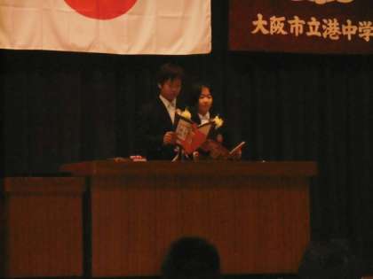 三年間を振り返り全ての人に感謝を込めて答辞を読み上げました。練習の時には、号泣したそうでしたが、本番の式では、こみ上げる場面が何度もあったけど堂々と読み上げました。式のあと、さらに卒業生全員で先生方や保護者、寮の職員の皆さんへ「ありがとうございました。」の気持ちを込めて【夢の叶う場所へ】を唄いました。卒業おめでとう。