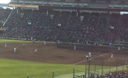 三塁にまっしぐら(坂之下)このあと次打者がヒットで勝ち越しました。応援席はすごい地響きのような盛り上がり、感動をありがとうございます。遂にベスト8進出を果たしました。