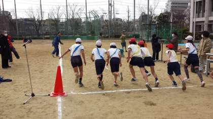 池島小学校と八幡屋小学校の駅伝大会が元気いっぱいにスタートしました。
