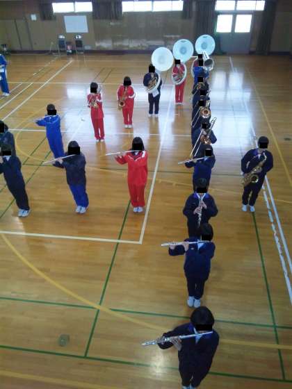 このために5中学校は毎週集まり合同練習をしています。写真はそのようすです。