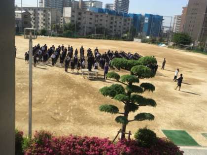 本日は全校集会でした。校長先生より、50年ぶりに港区に帰ってきた人の話がありました。