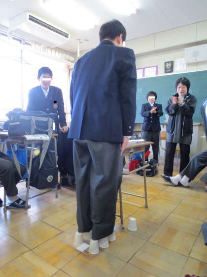 さらに、たくさんの力がある中で「圧力」の勉強をしました。そのことを知るために、紙コップの上に立ってみる実験をしました。