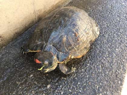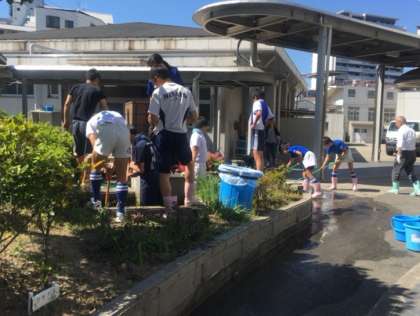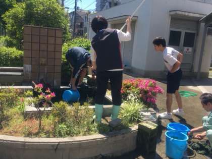 部活の生徒と有志の生徒、そして教職員でカメの池の掃除をおこないました。