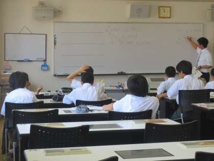 文法「疑問詞(what)」の授業をしていました。生徒たちは元気よく手を挙げて発言していました。