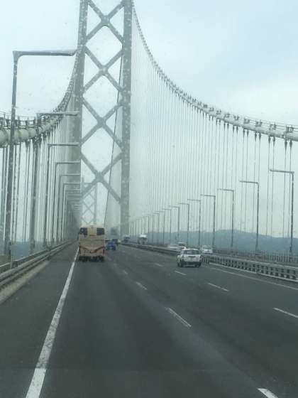 1991メートルもある世界最長の吊り橋明石海峡大橋を通過中です。