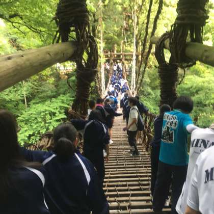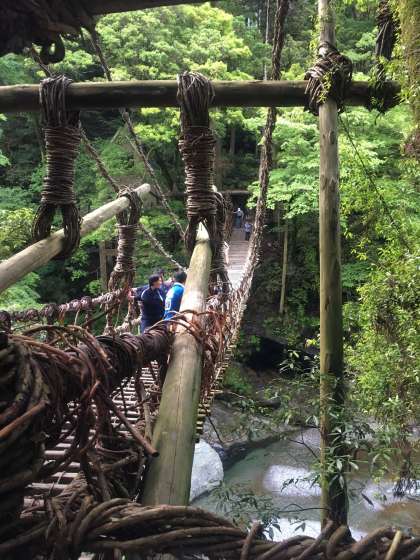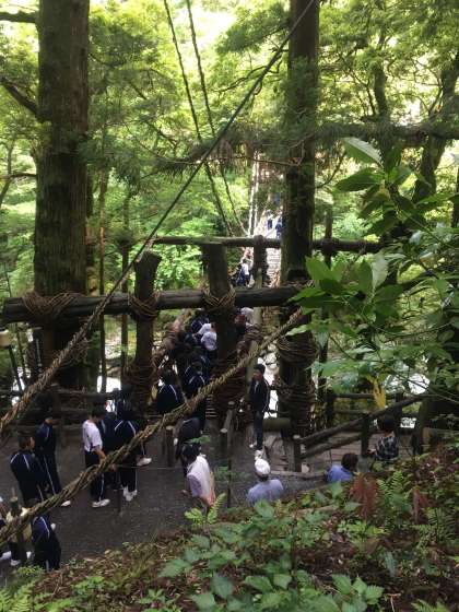 日本三奇橋と謳われる、「かずら橋」を渡っています。