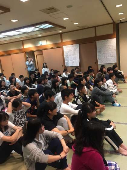 保護者の皆さま、地域の皆さま、港中学校ホームページをご覧の世界中の皆さま、平成29年度、港中学校3年生修学旅行、夜レクスタートです。
