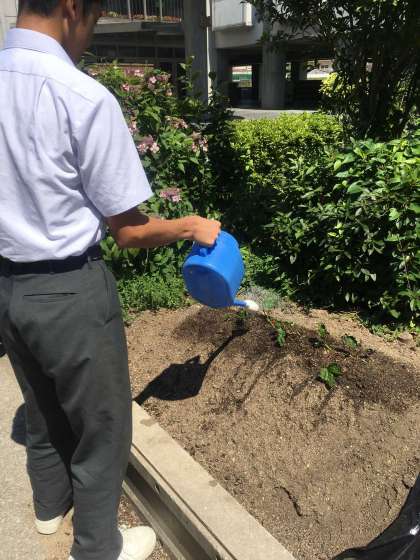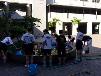 さつまいも水やりと池の掃除の様子です。