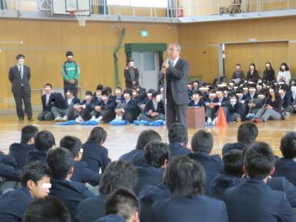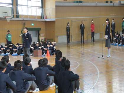 卒業生が体育館に入場し、校長先生のお話、在校生(1・2年)からの祝福のコメントがありました。