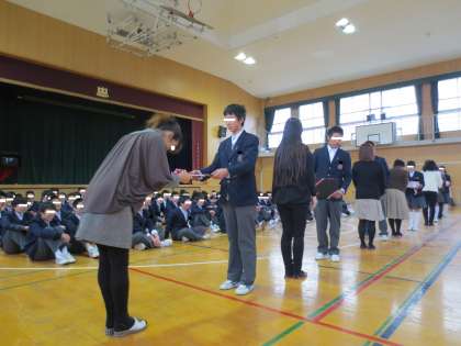 その後、3年生よりお礼のコメントと在校生へ向けたエールの歌を送りました。