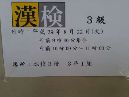 8月22日(火)に漢字検定が実施されました。