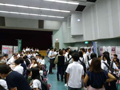 公立・私立合計33校の高校の先生方が来られて、説明をしてくださいました。