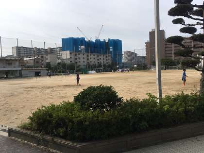 港中学校、各部活動が朝練習に取り組んでいます。
