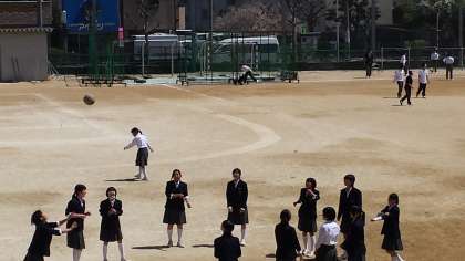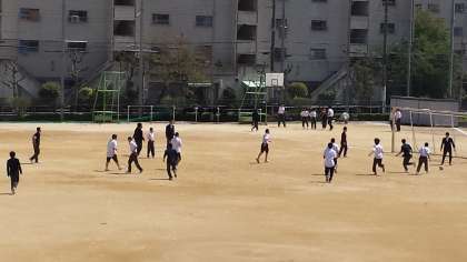 全校の三分の一の生徒が運動場で、サッカー、バレーボール、バスケット