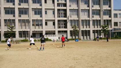 基本的なことを少人数に分かれ、2・3年生の先輩たちが1年生にラグビーのいろはを教えていました。