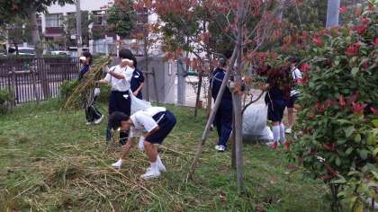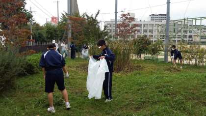 運動部の生徒を中心に頑張って草刈りを行いました。