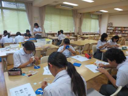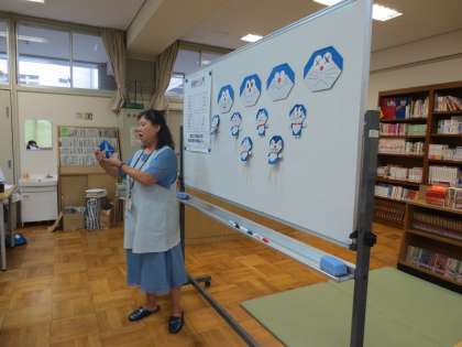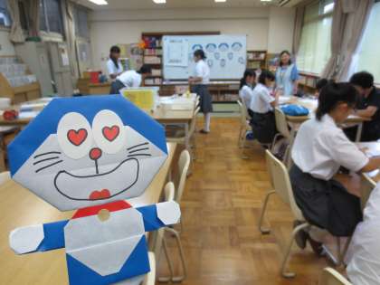 折り紙を使い、アニメのキャラクターを作っていました。生徒それぞれが思い思いの表情を描いていました。