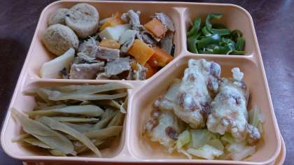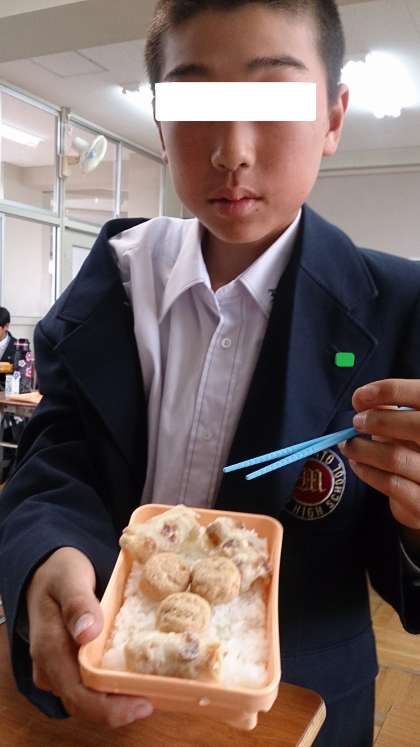 食べやすいように生徒がごはんの上におかずをのせたようで「先生、撮って!」というリクエストがあったので撮ってみました。