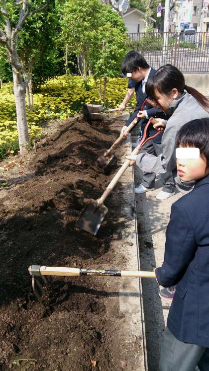 そこで、新しい土と肥料を用意し、先生たちにも手伝ってもらい、畑の準備をしました。