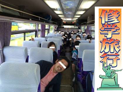 バス車内は…写真のように朝が早かったのもあり、ぐっすりっと寝ている港中生もいるようです。