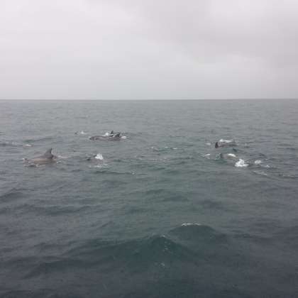 午前中のイルカウォッチングでは、イルカの大群に遭遇しました。