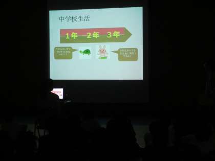 中学生にもわかりやすいようにたくさん映像を入れて説明しました。