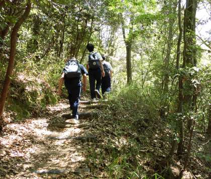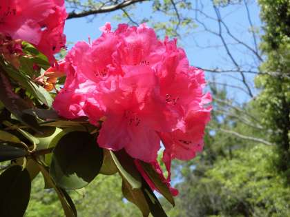 大文字コース、自然とのふれあいコース、せせらぎのそばを歩く杉ガ谷コース、五月平高原コースと、何度もアップダウンを繰り返し、5時間歩きました。山の中で咲いていたセイヨウシャクナゲはとても鮮やかな色できれいでした。最後に都市緑化植物園に寄り、たくさんの花に癒されました。