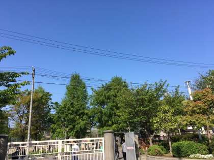 雲一つない晴天のもと、港中生、元気いっぱい朝のあいさつをして登校しています。