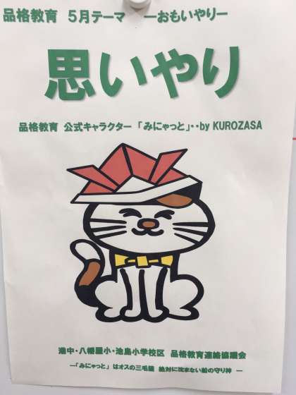 港中学校、公式キャラクター「みにゃっと」が新緑輝く、5月のテーマを設定してくれました!!