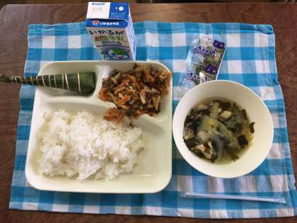 本日5月2日、端午の節句にちなんで、給食にちまきがでました。