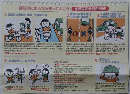 昨年、道路交通法という法律が改正されました。自転車は法律上「軽車両」です。自転車に関するルールがあります。みなさんは知っていますか?