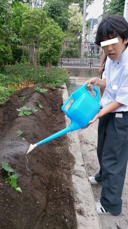 ジョーロを使い、上手にまんべんなく水をやっています。